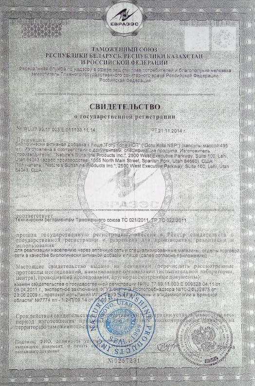 Состав Готу Кола НСП
